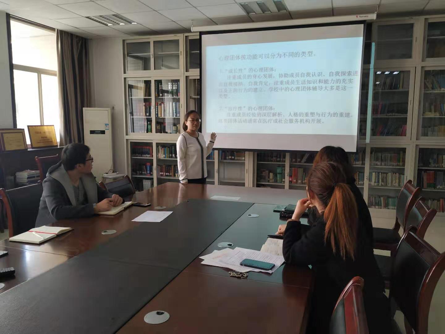 全体辅导员结合各自在工作中发现的学生心理问题,就“大学生常见心理问题的典型特征”、“心理问题的疏导”两个方面进行了实例讨论交流。本次业务学习活动,不仅使我院辅导员更加深入地了解了开展心理健康团训活动的方式方法,也为工作中及时地发现并甄别学生存在的心理问题,培育学生健康心理起到了积极作用。