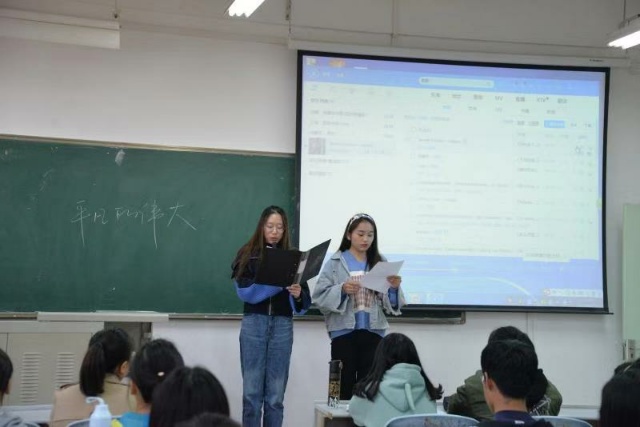 诵读会上,王木子等七位表演者用铿锵的语调、丰沛的情感先后朗诵了《我的中国心》、《我爱这土地》、《平凡的伟大》、《我用残损的手掌》等爱国主义诗歌,精心准备的同学们尽情抒发对党对国家的赤诚与呕歌和对奋斗青春的无悔与奉献。饱含深情的朗诵,触动心弦,催人奋进,深深感染了在场的每一个人,赢得阵阵掌声。