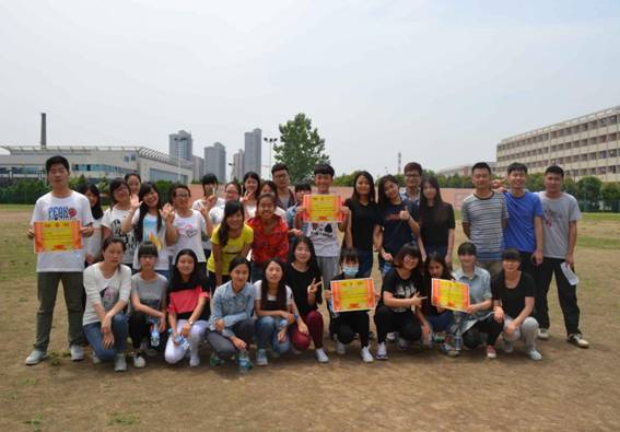 5月22日活动开展当天,我院参加活动的学生在三号教学楼门口集合,由学院工作人员向参与学生发放了活动中所需的名牌,并带领这些学生到达比赛场地。2013、2014级共八个班,每两班由抽签组成一队,一共四队。比赛分两组进行。经过激烈的角逐,第一场获胜班为2013级1、2班,第二场获胜班为2013级1班、2014级5班,比赛结束后,获奖班级领取了奖状并合影留念。