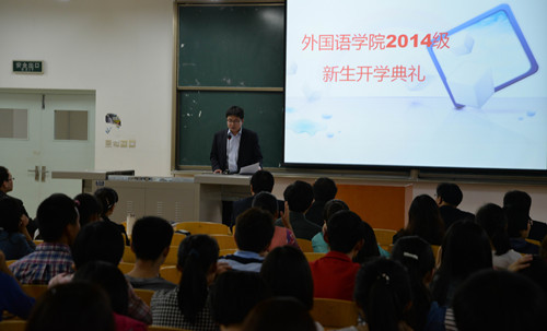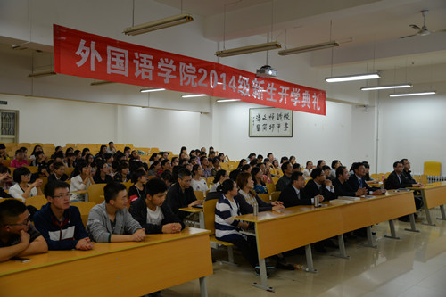 2014年9月25日晚7:30,我校必赢线路检测3003no12014级新生开学典礼在教学楼BJ11隆重举行,必赢线路检测3003no1院长马庆林教授,党委书记燕福民,副院长桑元峰副教授,法律英语系主任樊养才副教授、商务英语系主任马腾教授等出席开学典礼。热烈的掌声中,燕福民书记主持开学典礼。