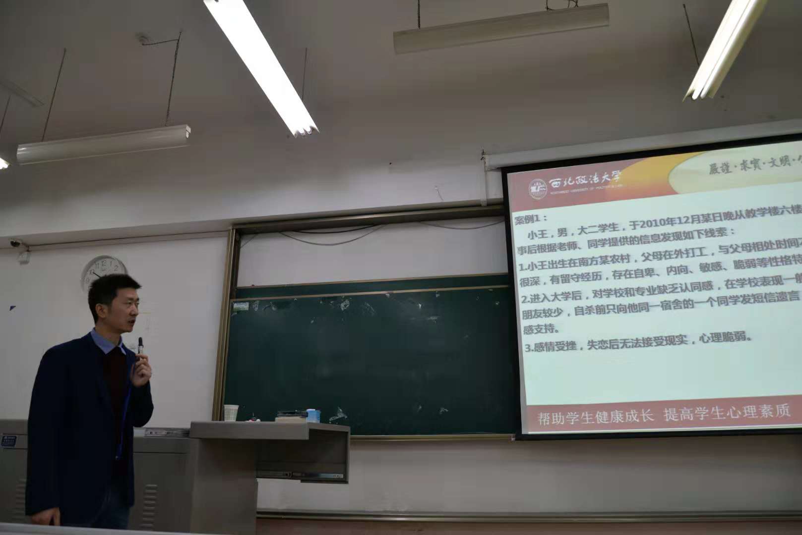 学生心理健康教育中心的主任赵智勇老师以“大学的幸福观点”为主题向同学们普及了关于心理健康的知识。讲座伊始,赵老师向学生提问“影响大学生幸福的因素有哪些”,提问的方式迅速引起了大家的兴趣,多位学生分别作答后,赵老师总结了影响大学生幸福的因素包括生活环境、学业、人际交往、家庭状况、恋爱、就业等。随后,赵老师以几个真实案例分别讲解了大学生常遇到的几大心理问题及解决方案:大学生的幸福观、好好活着、既来之,则安之、明确目标,走出迷茫、从零开始,理性比较、重视家庭的情感功能、超越自卑,拥抱自信、女大学生要自尊自爱,理性对待爱情、用心交往,与人为善等。最后,赵老师呼吁大家重视并正确看待心理健康问题,并欢迎学生到心理健康中心来咨询。