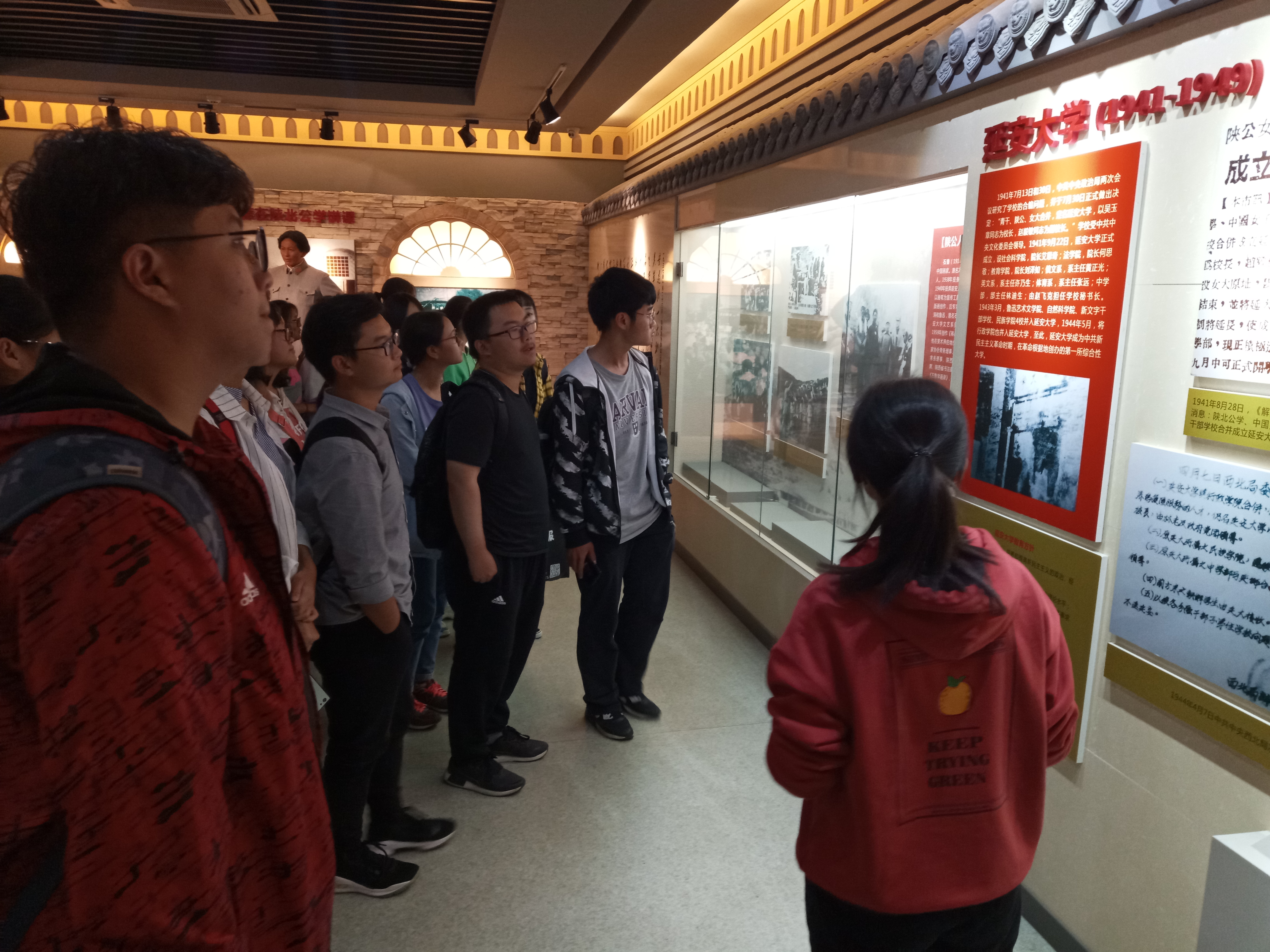 随着在讲解员的引导,新生们分别参观了我校校史馆和张汤墓。在校史馆历史厅中,讲解员详细讲解了我校的历史沿革,从陕北公学到延安大学,到西北人民革命大学、政法干校西北分校、西安政法学院、西北政法学院,再到如今的我校,清晰的历史脉络让学生们了解到西法大80多年的发展历史;“严谨、求实、文明、公正”的校训和“法治信仰、中国立场、国际视野、平民情怀”的育人理念,“政治坚定、实事求是、勇于创新、艰苦奋斗”为核心内容的“老延大”优良传统一脉相承。我校的开拓进程,让学生们切身感受到我校的发展历史和鲜亮的红色文化底色。最后,讲解员介绍了张汤墓遗址“一馆、一碑、一亭”的结构,从张汤的画像与壮举详细的解说了张汤的生平。张汤这位法学大家长眠于政法学校,是历史的巧合,也是政法的幸运,这段历史能够让学生们切身感受我校深厚的文化底蕴。
