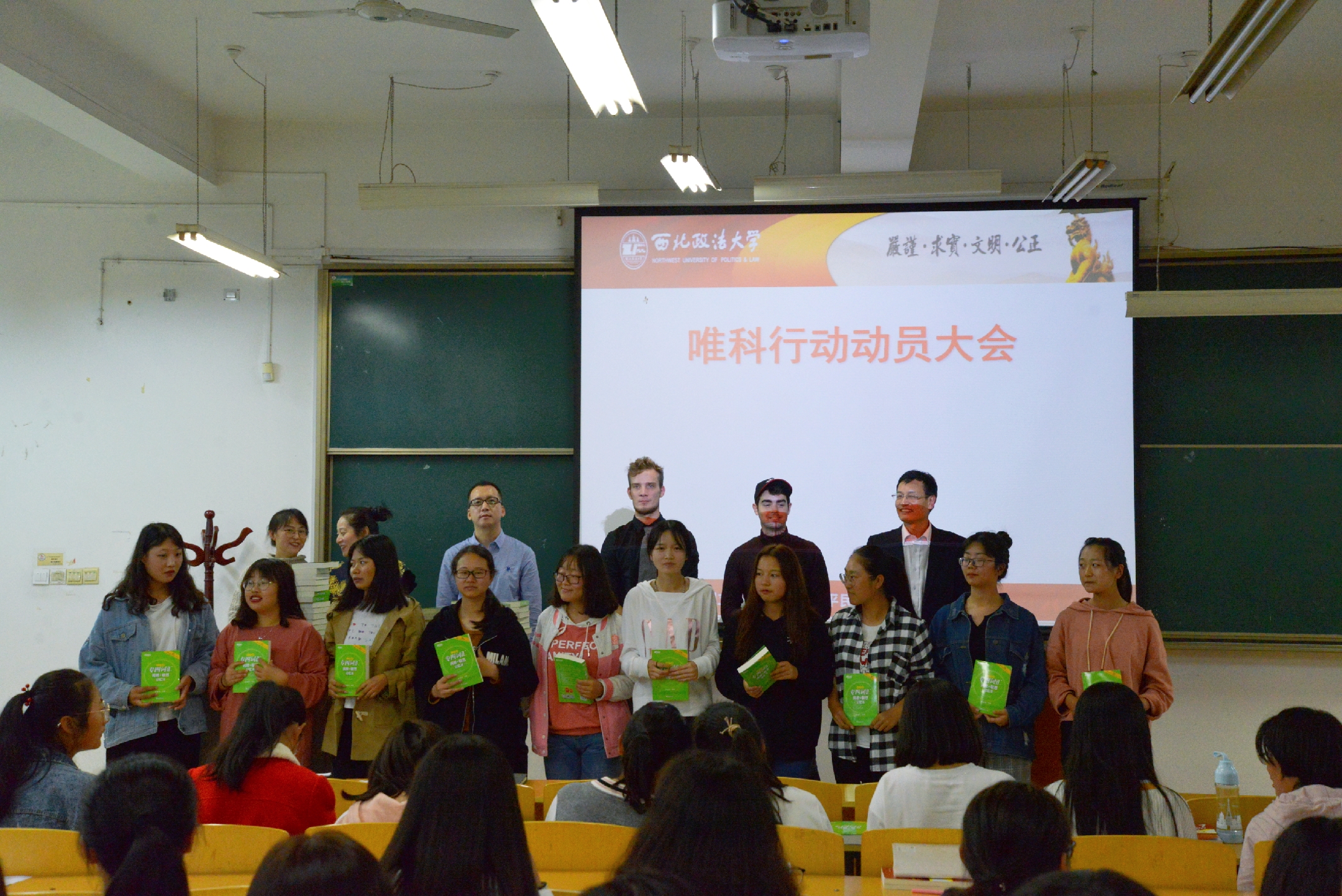 开学典礼第二阶段是必赢线路检测3003no1“唯科行动”新生动员大会。 “唯科行动”是学院以凸显外语专业的优势和特色为目的的专项培训计划,旨在强化外语专业学生“听、说、读、写”的基本功训练。马庆林教授作了动员讲话,希望2018级新生能够将知识学在日常、用在平常,叮嘱新同学牢牢打实专业基础才能更好地探索知识的高度、挖掘知识的深度、拓展知识的广度。会上,学院领导、老师为新生发放了专业学习的书籍资料。