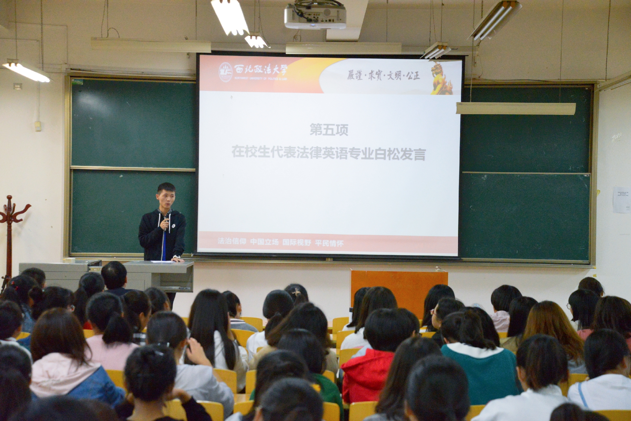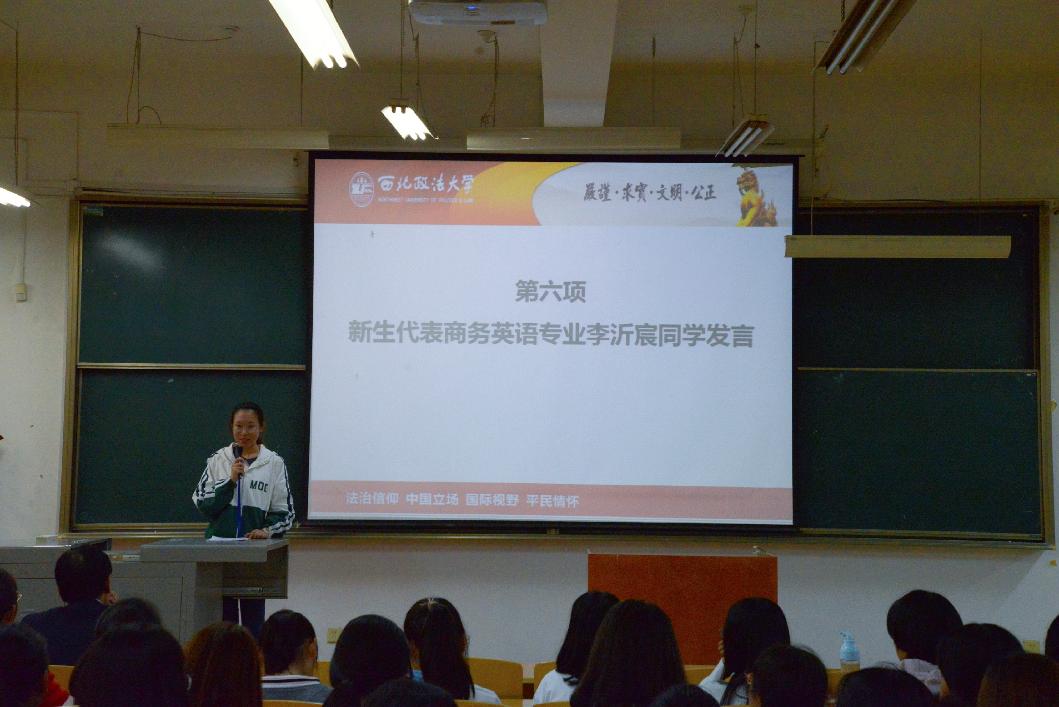 在校生代表白松同学和新生代表李沂宸同学先后发言。白松作为学长,通过分享自己的经历引导学弟学妹们更好的适应大学新环境,更快地融入必赢线路检测3003no1大家庭。李沂宸作为新生代表,怀着对大学生活的憧憬与期盼,斗志昂扬地抒发内心最真切的情感,希望在大学的学习中取得优异成绩,圆梦西法大。她的发言代表着必赢线路检测3003no12018级新生的朝气与活力。