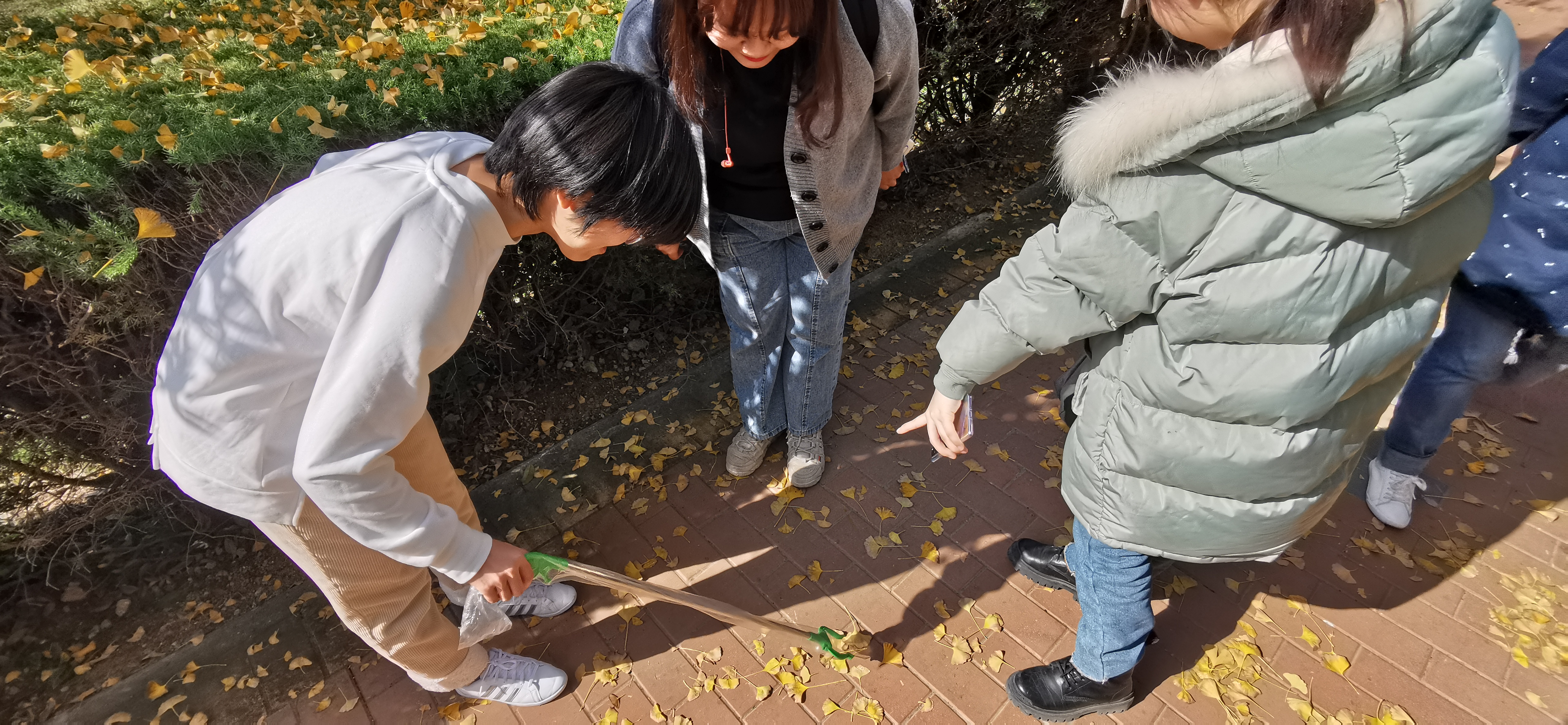 此次实践活动主要是对学校图书馆到学校食堂区域内的环境进行清扫与归整,学生们以3—5人为一小组,从不同的路线出发,针对草坪里丢弃的烟头、塑料瓶、废纸等进行拾捡,对水泥道路面上的泥土进行清扫,经过1个多小时的的辛勤劳动,被打扫区域的环境有了明显的改善。最后同学们怀着满满的成就感将垃圾集中处理并且将清扫工具统一归还。