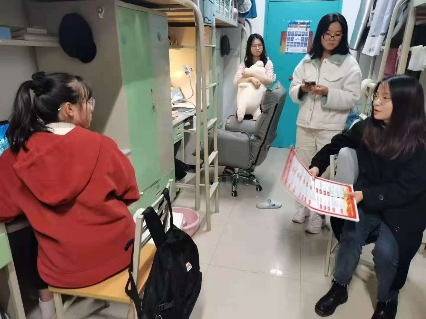 在与新生的交流中,党员还向同学们宣传了党的十九届五中全会精神,分享了自己对于会议内容和会议精神的理解,也鼓励新生们要多关注国家大事,在了解国家政策的同事,规划好自己的大学生活和职业发展。