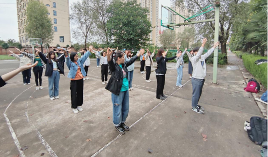 习近平总书记2020年4月在来陕考察时说到:“文明其精神,野蛮其体魄,我说的‘野蛮其体魄’就是强身健体。”利用晨读时间组织学生在学校水泥篮球场学习健身操、广播体操,将晨读与晨练相结合,达到学生德智体美劳全面发展的培养目标,增强学生的身体素质,提升学生的整体精神面貌。