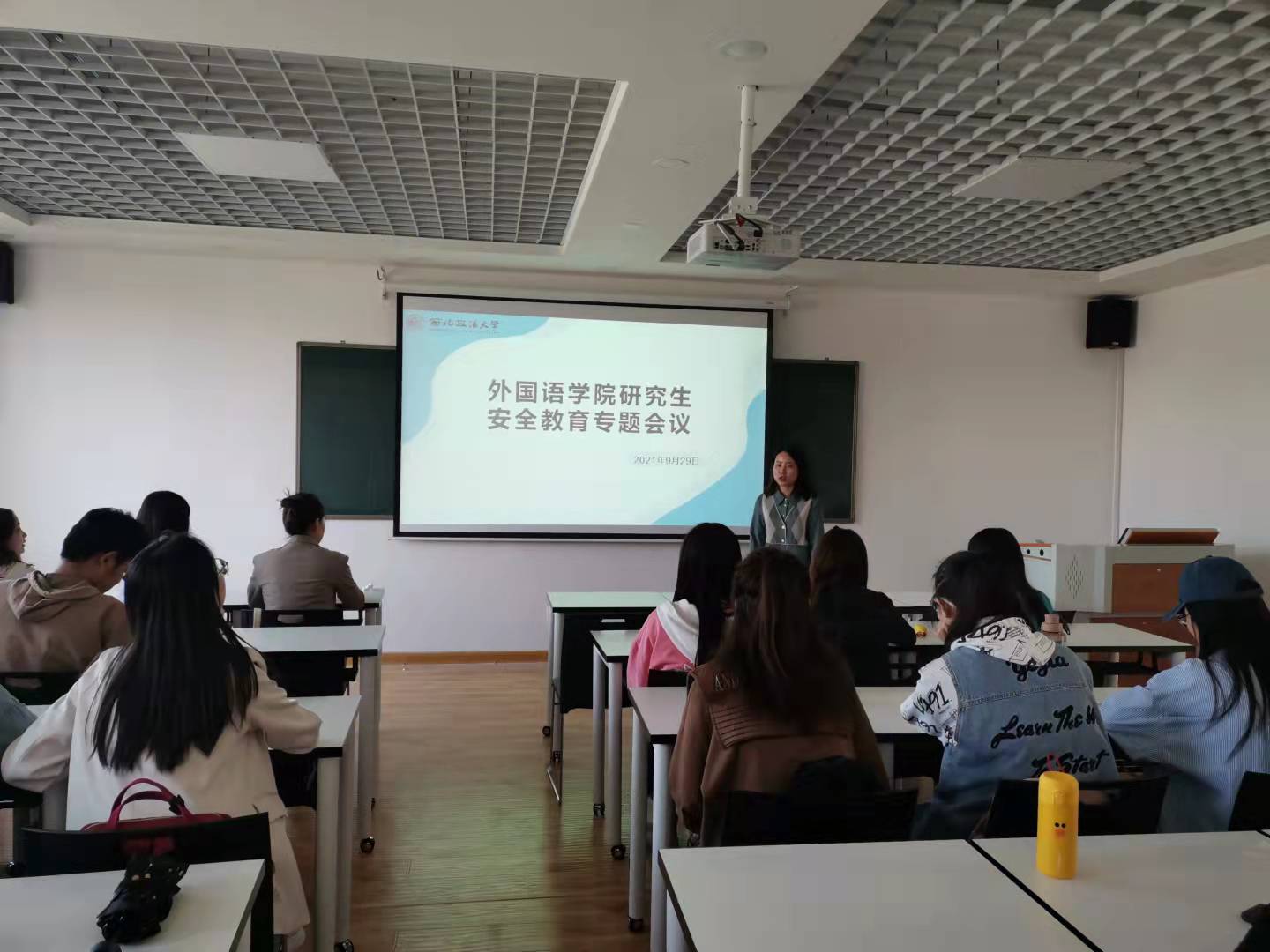 首先,崔玮从交通安全、宿舍安全、饮食安全、财产安全等四个方面提出了相关要求,让同学们认识到在生活中要防患于未然,懂得生命的脆弱与可贵,同时也为同学们敲醒了安全的警钟且再三叮嘱同学们一定要保护好自己的人身安全。随后,给同学们提醒了国庆安全问题,要求同学们国庆期间遵守所在地防疫规定,积极配合防疫,合理规划出行,并且在“我在校园”平台及时进行报备。