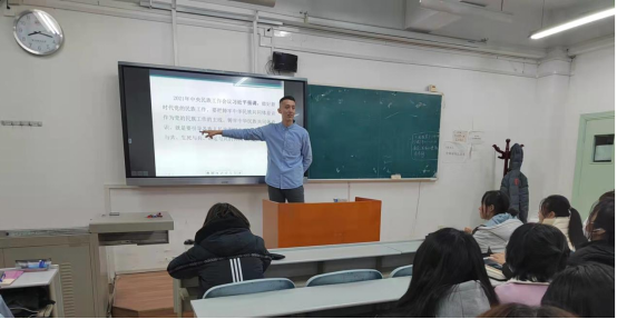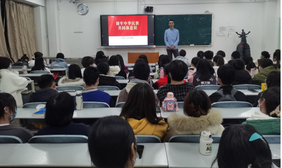 “铸牢中华民族共同体意识,就是要引导各族人民牢固树立休戚与共、荣辱与共、生死与共、命运与共的共同体概念”。伊力亚斯老师引用到习近平总书记在今年中央民族工作会议上的讲话。他对同学们讲到:“有国才有家,中华民族伟大复兴是我们每个中国人的使命和责任,我们56个民族都是一家人,各民族同学也要像石榴籽一样,要紧密的团结在一起,相互帮助,相互关爱。新时代大学生一定要树立正确的民族观、价值观,共同铸牢中华民族共同体意识。”