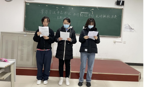 2021级新生各班利用晨读时间召开了主题学习班会。2班学委王思维同学说道,习近平总书记一直对粮食安全问题高度重视,2013年1月就作出重要指示,要求厉行节俭,反对浪费。张雨欣同学通过引用新闻对部分学校存在食物浪费和学生节俭意识缺乏的问题做了举例,同时呼吁班级同学要在就餐过程中文明用餐,珍惜食物,按量取食。