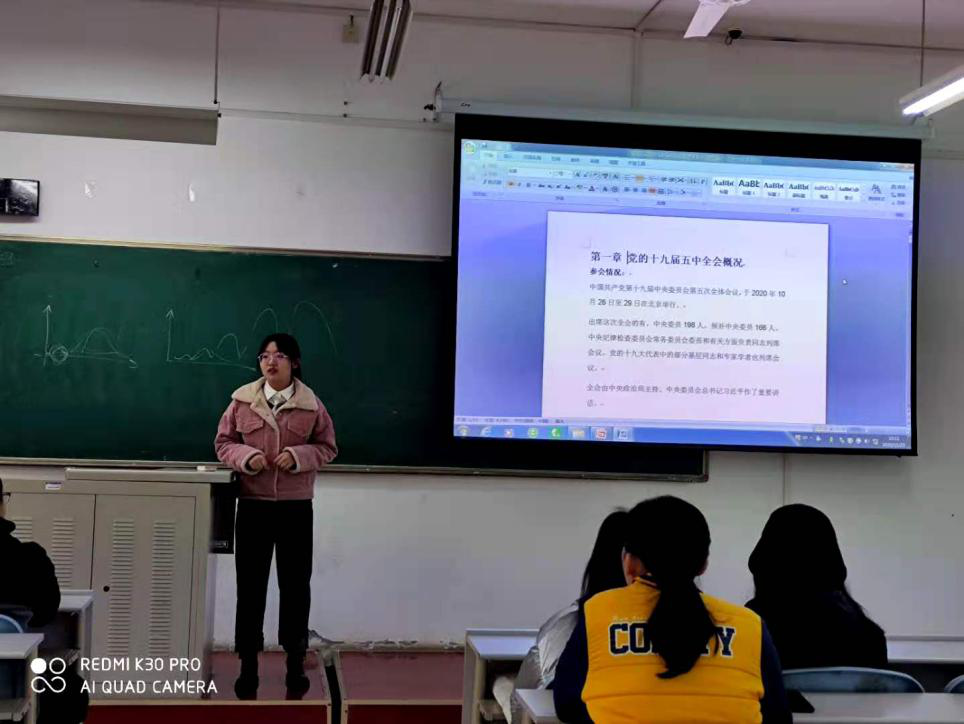 2018级1班,2班等团支部采用了宣讲的形式,由团支书或团员代表为大家讲解“宪法宣传周”活动开展的背景、我国宪法的发展历程、“宪法日”的由来和意义等,强调了宪法的重要地位。