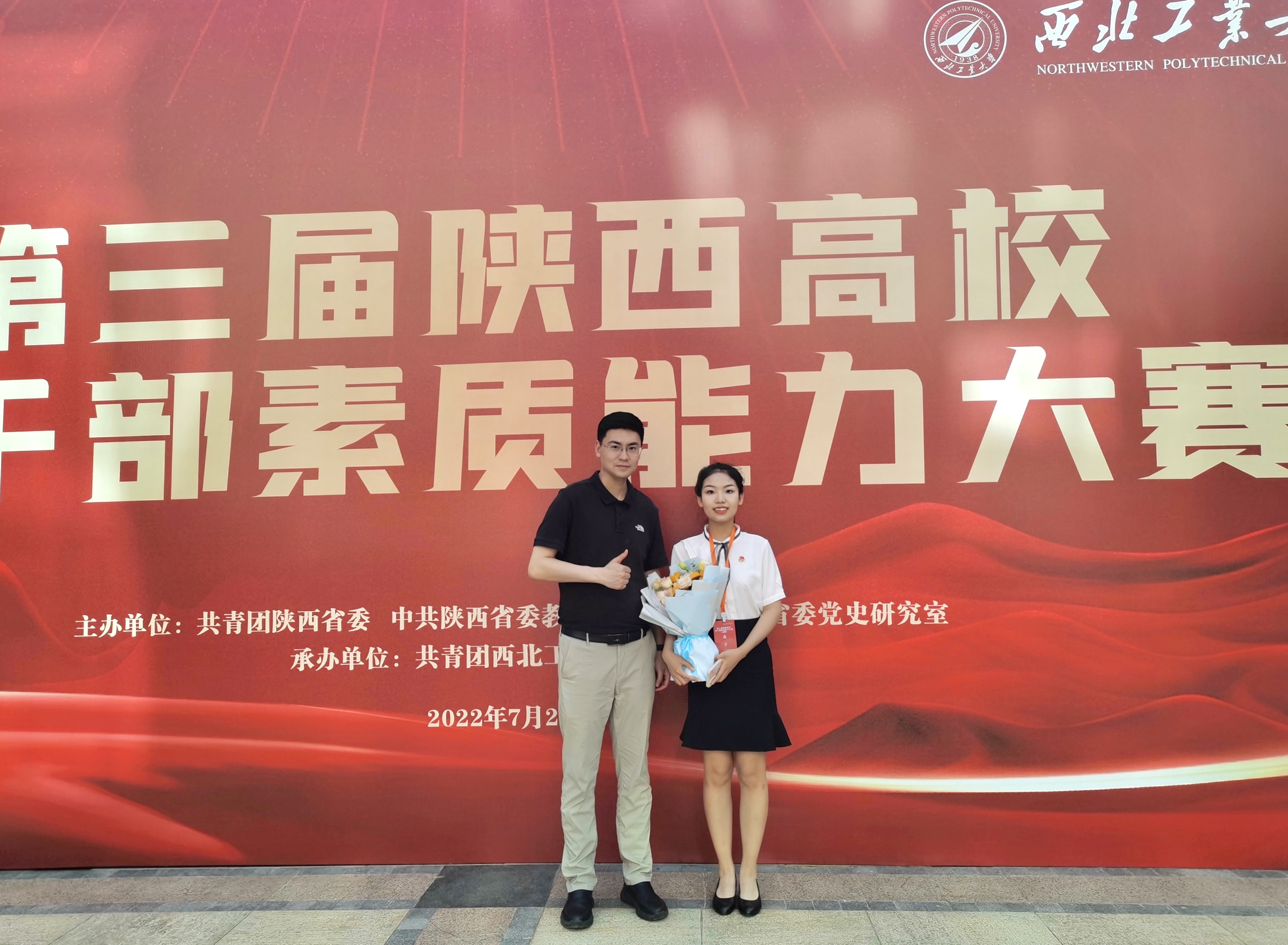 2022年7月2日,由共青团陕西省委、中共陕西省委教育工委,中共陕西省委党史研究室共同主办的第三届陕西高校团干部素质能力大赛在西北工业大学举行。本届团干部素质能力大赛共设高校团委书记组、专职团干部组和学生团干部组。此次比赛全省共76所高校参与,共计1025件参赛作品。经过激烈角逐,我校团委副书记秦立荣获高校团委书记组三等奖,团干部赵欣辰老师获专职团干部组一等奖,我院李泽华同学与新闻传播学院董醒玉同学分别获学生团干部组二等奖、三等奖,学校荣获“优秀组织单位”。