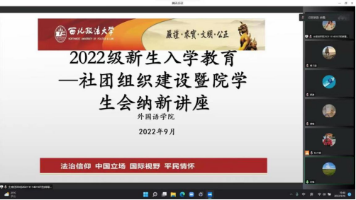 为丰富学生课外活动,提升学生综合素质,9月16日晚上,外国语学院学生会、学生刊物《英姿》以及学院辩论队面向全体2022级新生举行了线上纳新活动。学院团委书记余瑞,新生辅导员郝源参加了会议。