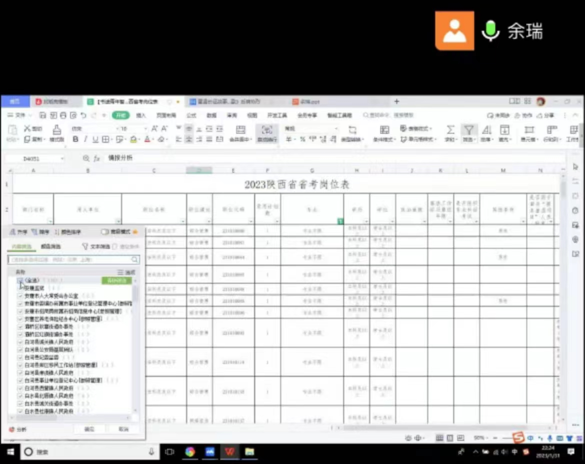 1月31日晚,参加省考的部分同学就岗位选择、报名、笔试准备情况进行了线上交流。余瑞老师结合我校2021年、2022年参加省公务员考试录取情况,为同学们分析了部分2023年省考相关职位报考的条件要求和历年的激烈竞争形势,帮助同学们稳住心态、找准方向、树立目标。