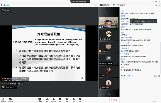 范老师首先对睡眠-觉醒障碍与躯体疾病进行了分析说明,讲到睡眠不足会增加患心血管疾病的风险,还会导致躯体疾病发病风险增高;进一步分析了睡眠-觉醒障碍与精神疾病,抑郁症、焦虑症、双相情感障碍、精神分裂症等多种心理疾病与睡眠问题息息相关。