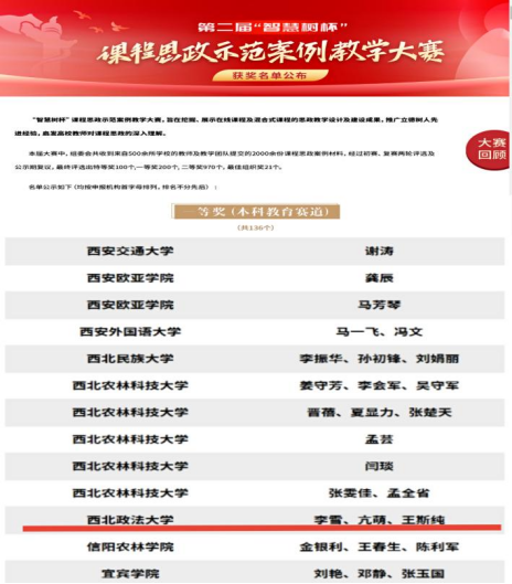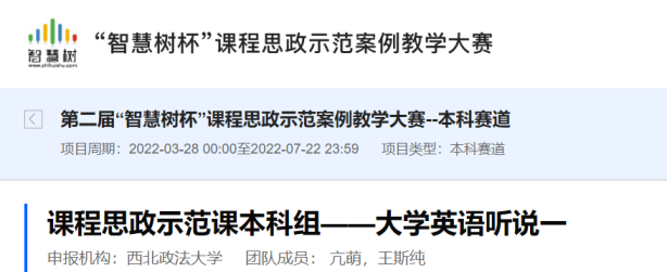 第二届“智慧树杯”课程思政示范案例教学大赛于2022年3月至8月举办,通过提交作品、初赛和复赛评选层层选拔,我院大学英语团队参赛案例荣获全国本科教育赛道一等奖。
