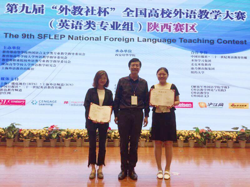2018年5月11日至12日,由教育部高等学校外国语言文学类专业教学指导委员会、教育部高等学校大学外语教学指导委员会和上海外语教育出版社联合主办的第九届“外教社杯”全国高校外语教学大赛陕西赛区比赛在西安培华学院长安校区隆重举行。来自西安交通大学、陕西师范大学、西北大学、西安邮电大学等全省40余所高校约40多名优秀教师选手参加了此次比赛。经过两天激烈的角逐,我院闵晨希老师获得本次比赛英语专业组二等奖,王颖平老师获得本次比赛商务英语专业组三等奖。