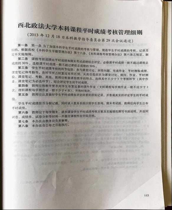 3、课程考核成绩应根据期末考试成绩和平时成绩综合评定。任课教师应根据学生参与课堂讨论、回答问题、完成作业、平时测验成绩和考勤等情况综合评定学生的平时成绩。教师应根据课程教学特点,选择其中不少于3个考核环节,综合评定学生平时成绩。平时成绩应在结课前向学生宣布。必修课程的平时成绩所占比例不应超过课程总成绩的30%,选修课平时成绩占总成绩比例不应超过50%。