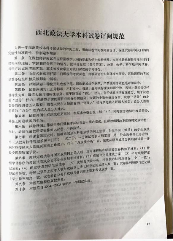 2、评阅试卷由开课教研室具体组织,要求采取集体阅卷、流水作业、专人审阅专题的方式(只有一名任课教师的课程除外)进行。评卷前要先进行试评,以确保评分标准的统一。评卷结束后教研室要组织复查。