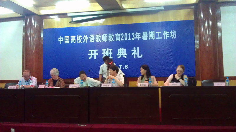 2013年7月8日至11日,由西安外国语大学西部外语教师发展中心与美国高等教育价值观学会(Society for Values in Higher Education, SVHE)共同举办的2013年中国高校外语教师跨文化交际、思辨能力培养与课堂互动体验暑期工作坊第四期,在西安外国语大学顺利举行。我院共有22名教师参加此次暑期工作坊。