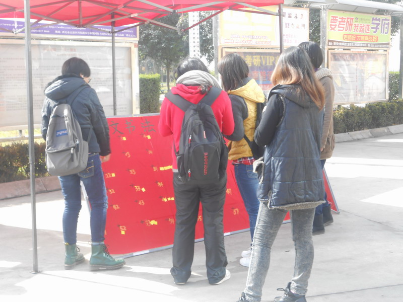 2012年11月14日到11月18日,我校第一届外语文化节之外文书法比赛在长安校区食堂丁字路口征集参赛作品。本次活动的对象为我校所有在校学生。
