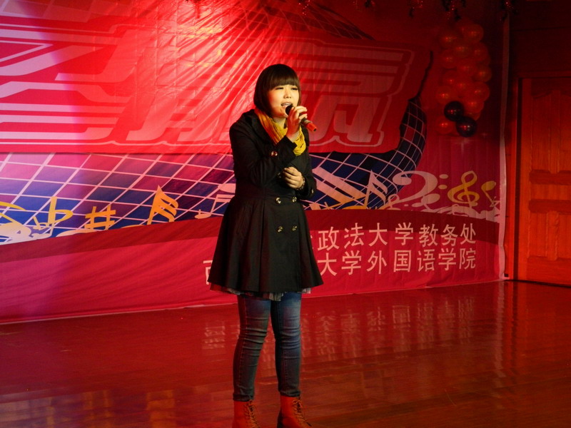 本次外文歌曲大赛吸引了来自经济管理学院,行政法学院,新闻传播学院等12个学院102名同学热情报名参与。经过初赛复赛层层角逐后,11名同学进入决赛。决赛分为两个环节:第一轮,11名选手分别演唱后,评委老师给出最后得分,按分数高低前6名进入最终角逐。最终,经济管理学院的曹琦同学一举夺冠!最后,教务处处长王麟做了总结讲话,他首先对外语文化节的开展表示鼓励和支持,认为本次外文歌曲大赛有来自全校12个学院的学生参赛,覆盖面广,对提高学生英语学习热情有积极的促进作用,希望以后能够越办越好,在比赛中出现更多的语种、有更多学生参与其中。