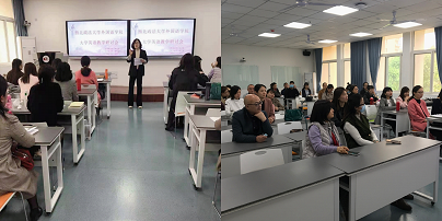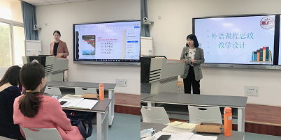 霍瑛老师以“大学英语课程思政”教学设计为主题,从课程思政的背景、内涵、原则、教学设计四个方面做了教学分享。她以《新视野大学英语视听说2》第三单元Time Out为例,通过挖掘与单元主题“运动”相关的思政元素,引入女排精神、拼搏精神、中国精神等思政素材,培养学生的爱国情怀与四个自信。