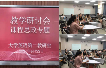 2021年6月22日,我院大学英语第二教研室召开了大学英语课程思政研讨会,教研室副主任柯菲老师主持会议,全体教师参会。
