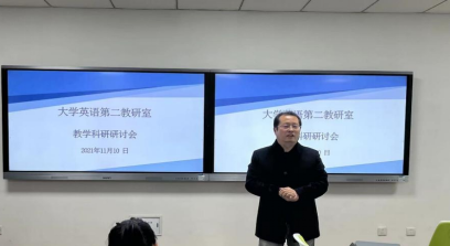 桑院长对教研室总体工作情况予以了充分肯定。他强调,教育首先要清楚为谁培养人、培养什么人、如何培养人。大学英语教学要满足国家社会需求,强化课程思政,增强国际传播能力,发展全人教育和提高人文素养。他希望我院大学英语教师进一步加强教学改革与研究,强化团队建设,学习前沿研究成果。