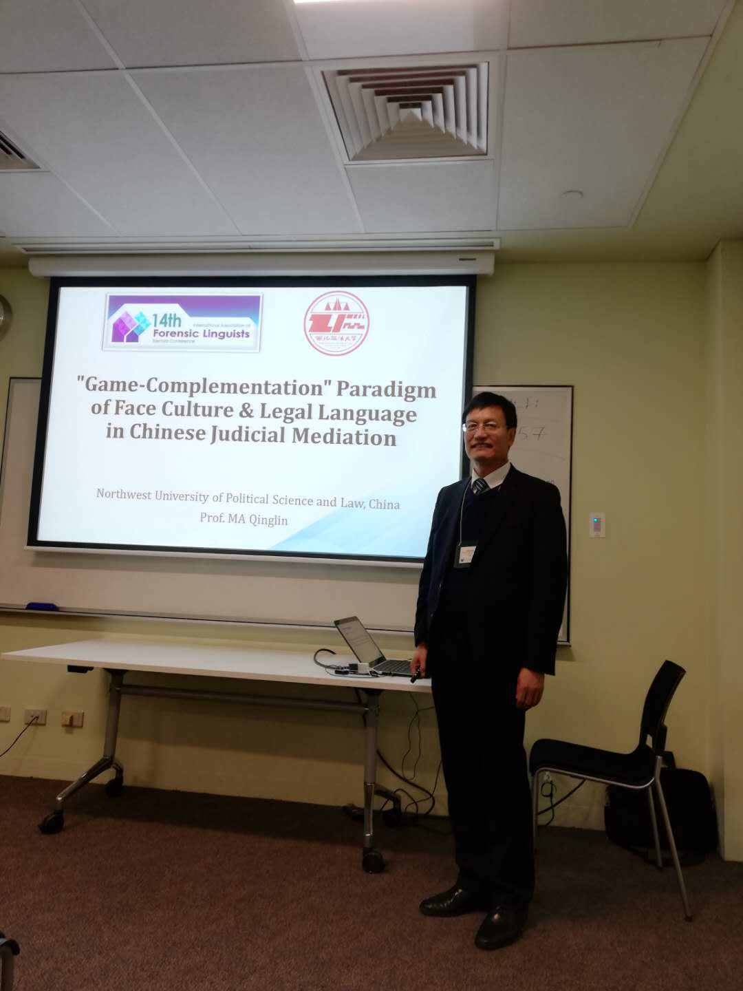 为期五天的大会共包括3个法律语言学工作坊、7场主旨发言、3场专题研讨、1个圆桌论坛、26场平行讨论、1场海报展示、1场研究生研讨、2场法律语言学新书发布会。马庆林教授在平行论坛里做了“司法调解中的面子文化与法律语言研究——‘博弈-互补’范式”的主旨发言,通过建立博弈-互补模型揭示人民调解中中国的面子文化与调解语言之间的关系,并通过具体的工伤赔偿案例进行了全面的调解语言博弈互补分析,受到参会人员的高度肯定并引发热议。本次会议是法律语言学领域的国际顶级学术会议,是法律语言领域难得的一次见面交流会,因此马庆林教授还借此时机与知名专家如Janet Ainsworth,John Gibbens, Chris Heffer等人进行亲切的交流,介绍我校的基本情况,并对上述学者发出了前来我校进行学术交流的诚挚邀请。